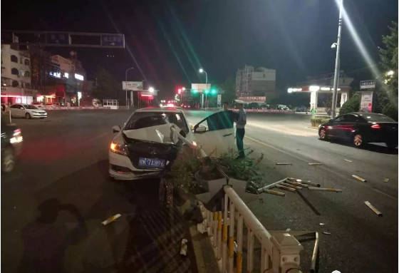 轿车路口转弯,撞上道路中间护栏7月25号凌晨,在颍上县城区,一辆疾驰的轿车在转弯时撞上了隔离护栏,车辆和护栏受损严重。据现场民警介绍,防撞柱跟护栏都撞毁有十几米远。有一个护栏的横杆把(车辆)引擎盖戳穿